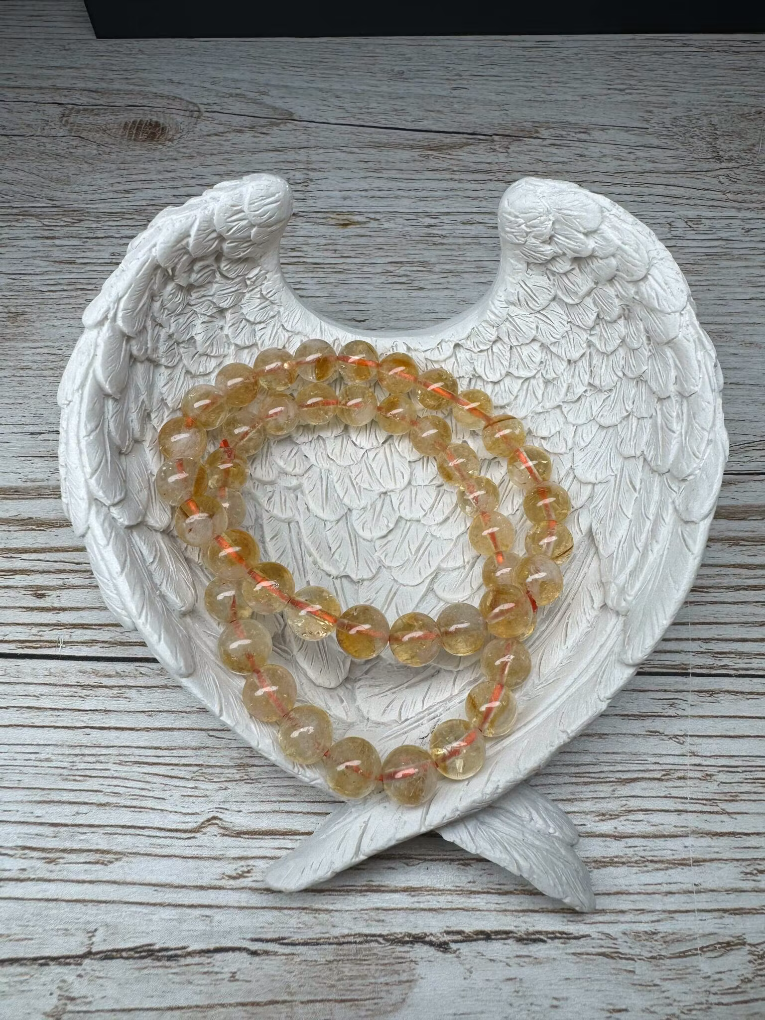 CITRIN: Den här kristallen jobbar på vår styrka och självförtroende. Den bringar lycka, energi, generositet och överflöd hos bäraren. Hjälper oss att släppa taget om ilska och irritation och tar bort destruktiva tankar. Den är renande, energigivande och bringar glädje i våra liv. Minskar stress och ångest. En kristall som attraherar framgång och pengar. Chakra: Solarplexus chakra